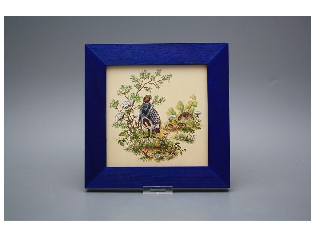 Keramisches Bild zum Aufhängen mit Holzrahmen, Temperatur beim Ausbrennen des Motivs in Höhe von 820°C, abriebfestes, waschbares Dekor.