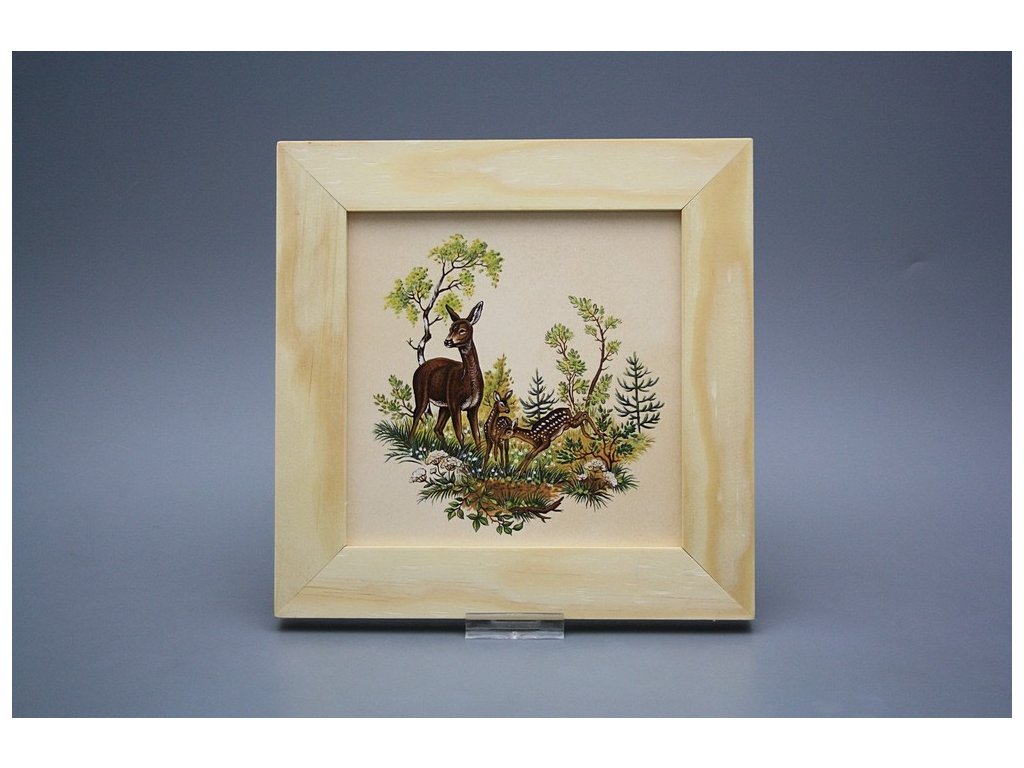 Keramisches Bild zum Aufhängen mit Holzrahmen, Temperatur beim Ausbrennen des Motivs in Höhe von 820°C, abriebfestes, waschbares Dekor.