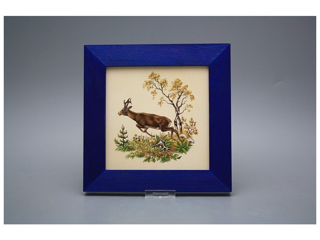 Keramisches Bild zum Aufhängen mit Holzrahmen, Temperatur beim Ausbrennen des Motivs in Höhe von 820°C, abriebfestes, waschbares Dekor.