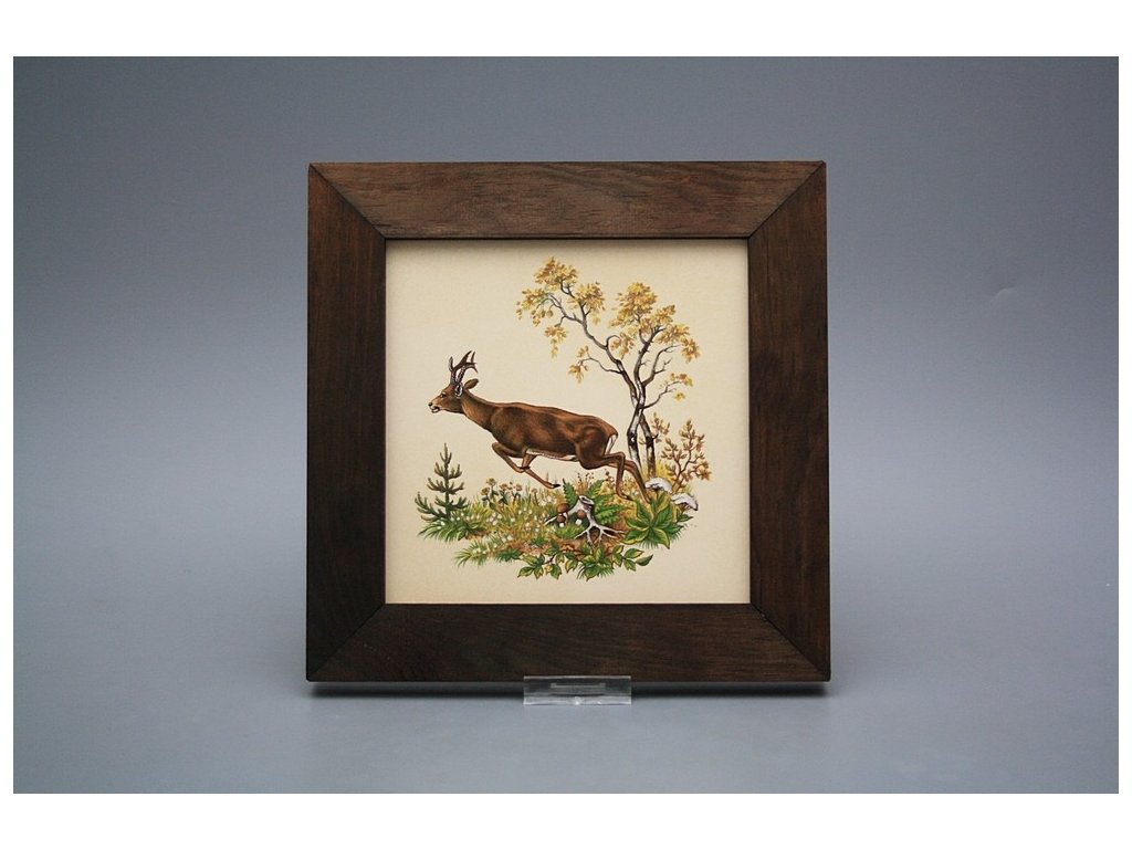 Keramisches Bild zum Aufhängen mit Holzrahmen, Temperatur beim Ausbrennen des Motivs in Höhe von 820°C, abriebfestes, waschbares Dekor.