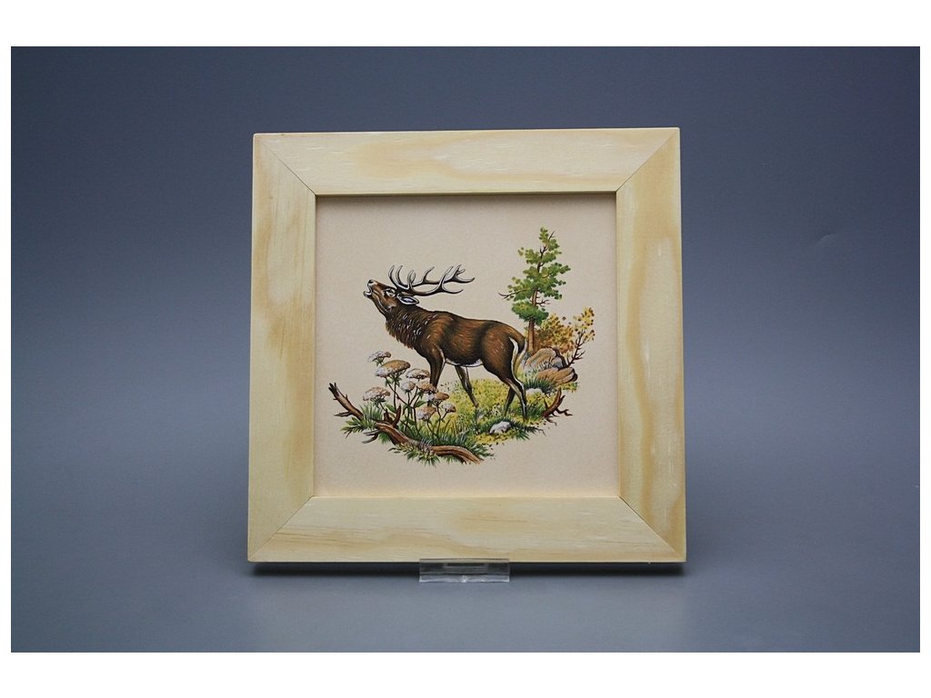 Keramisches Bild zum Aufhängen mit Holzrahmen, Temperatur beim Ausbrennen des Motivs in Höhe von 820°C, abriebfestes, waschbares Dekor.