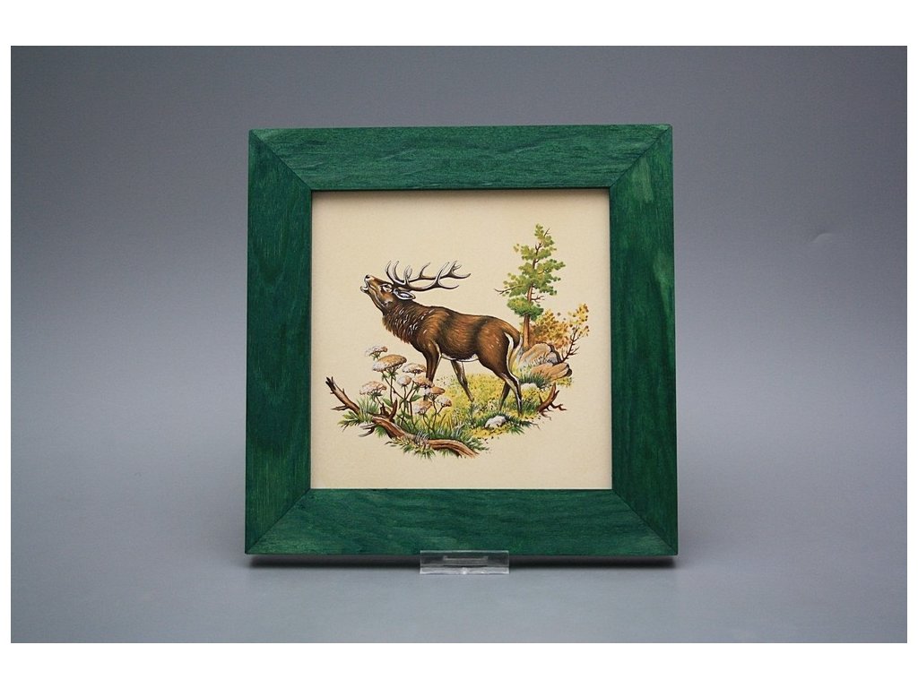 Keramisches Bild zum Aufhängen mit Holzrahmen, Temperatur beim Ausbrennen des Motivs in Höhe von 820°C, abriebfestes, waschbares Dekor.