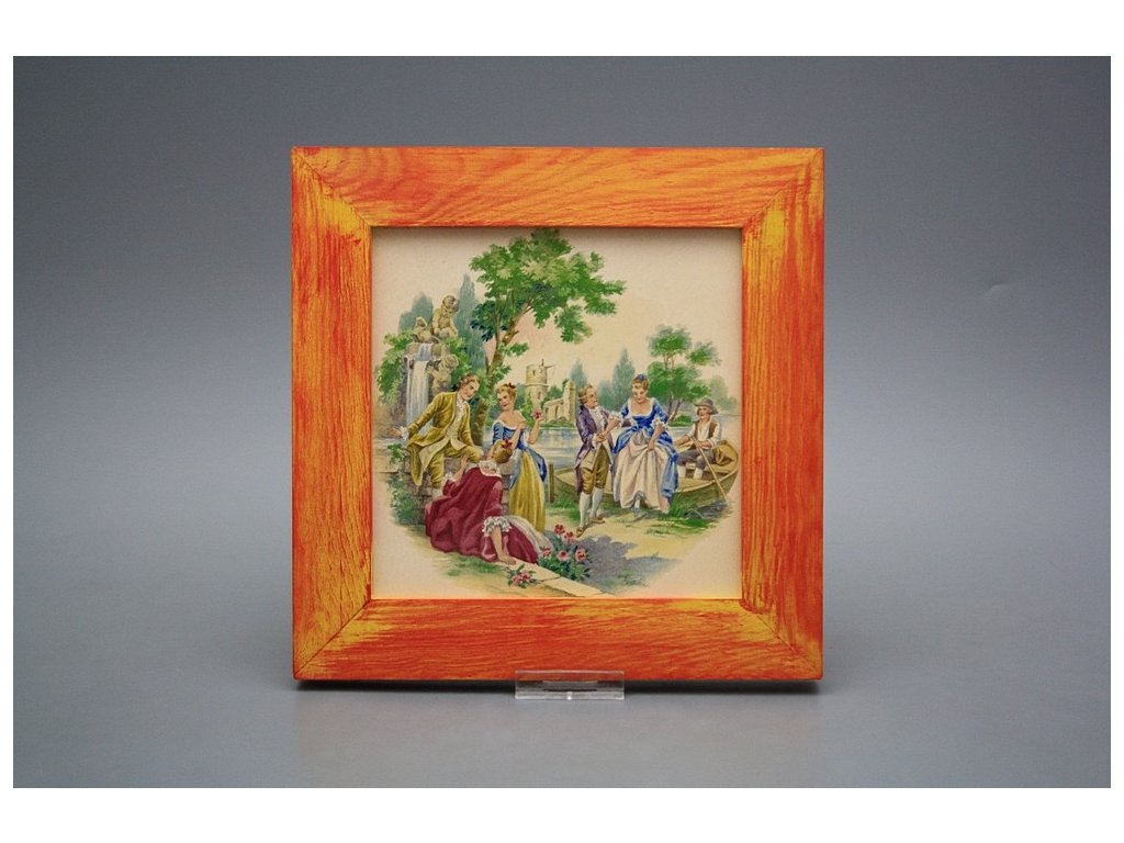 Keramisches Bild zum Aufhängen mit Holzrahmen, Temperatur beim Ausbrennen des Motivs in Höhe von 820°C, abriebfestes, waschbares Dekor.