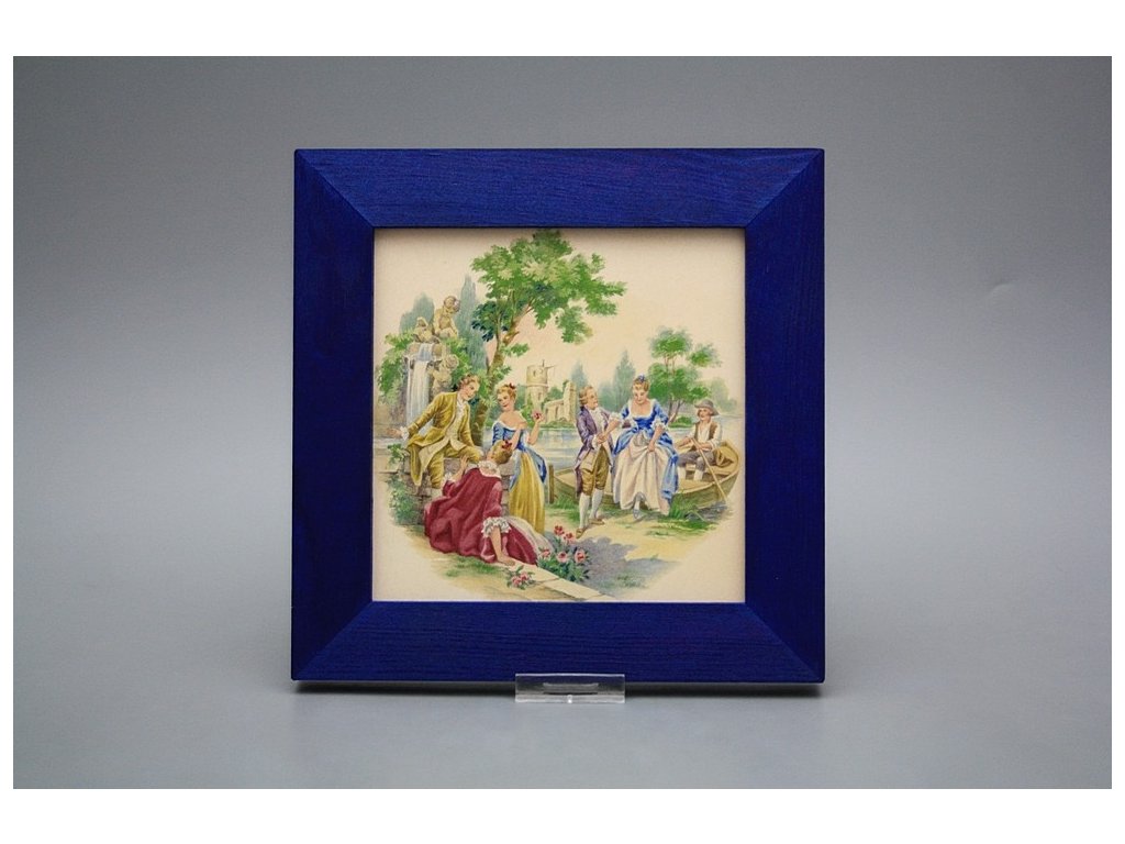 Keramisches Bild zum Aufhängen mit Holzrahmen, Temperatur beim Ausbrennen des Motivs in Höhe von 820°C, abriebfestes, waschbares Dekor.