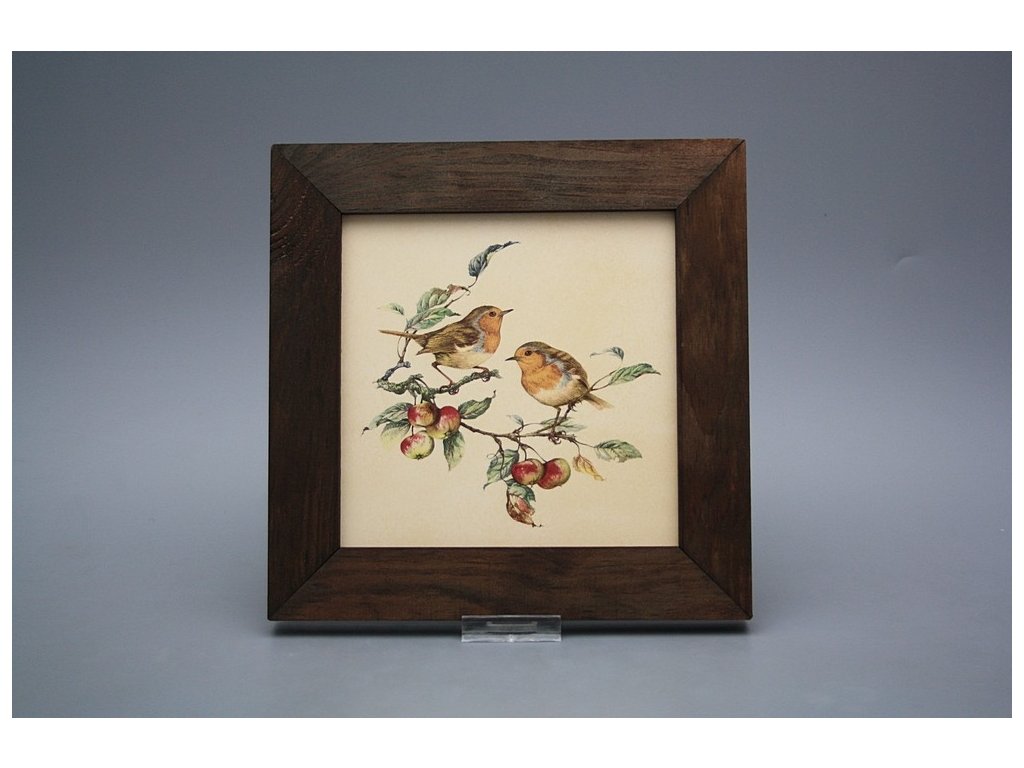 Keramisches Bild zum Aufhängen mit Holzrahmen, Temperatur beim Ausbrennen des Motivs in Höhe von 820°C, abriebfestes, waschbares Dekor.