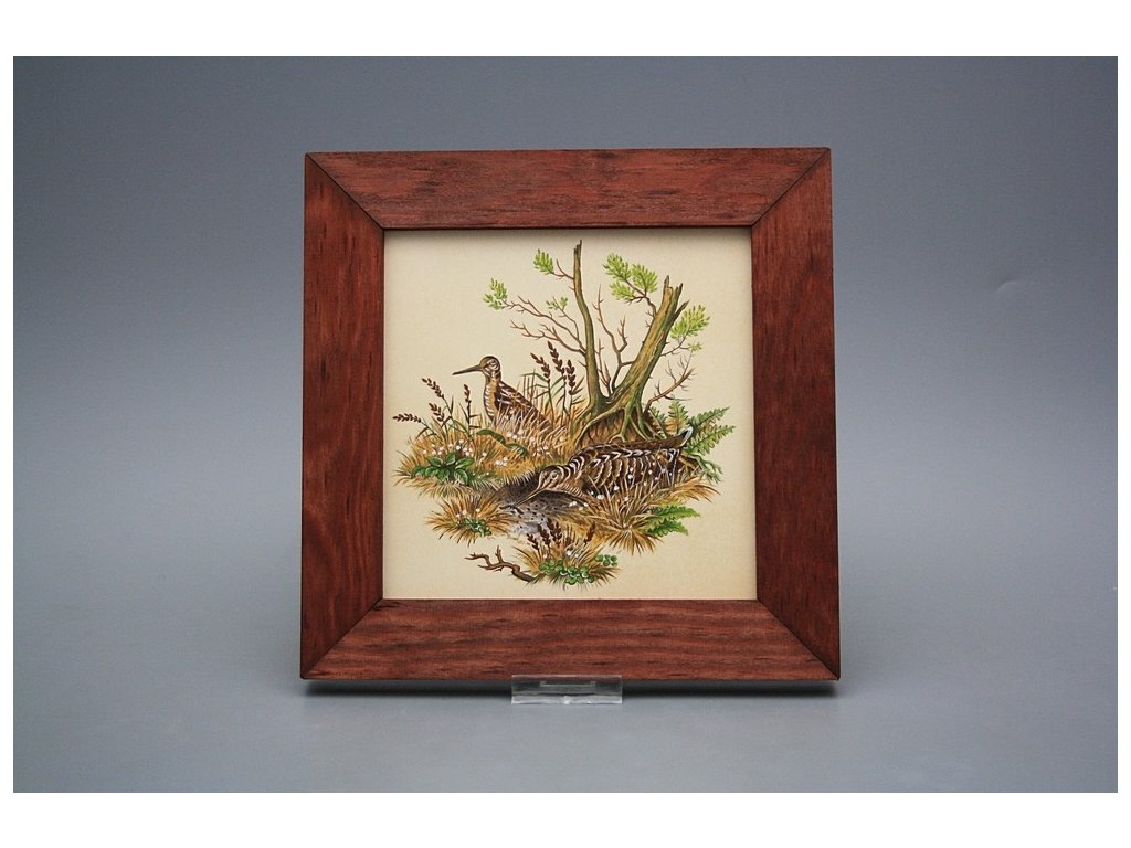 Keramisches Bild zum Aufhängen mit Holzrahmen, Temperatur beim Ausbrennen des Motivs in Höhe von 820°C, abriebfestes, waschbares Dekor.