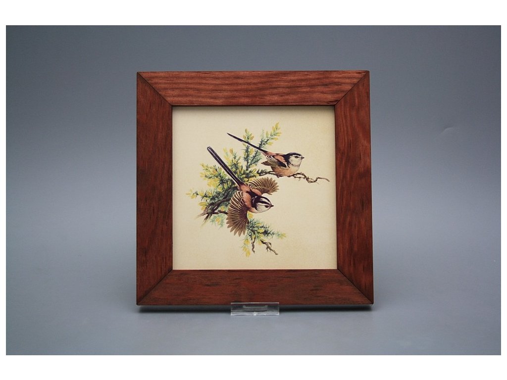 Keramisches Bild zum Aufhängen mit Holzrahmen, Temperatur beim Ausbrennen des Motivs in Höhe von 820°C, abriebfestes, waschbares Dekor.