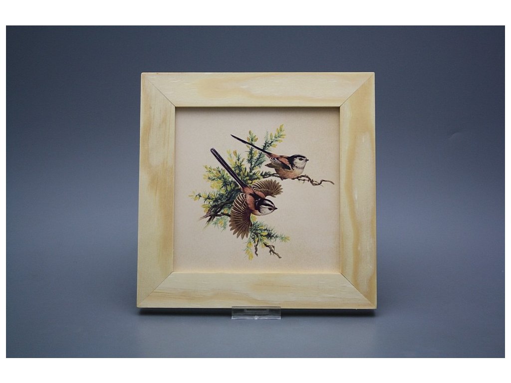Keramisches Bild zum Aufhängen mit Holzrahmen, Temperatur beim Ausbrennen des Motivs in Höhe von 820°C, abriebfestes, waschbares Dekor.