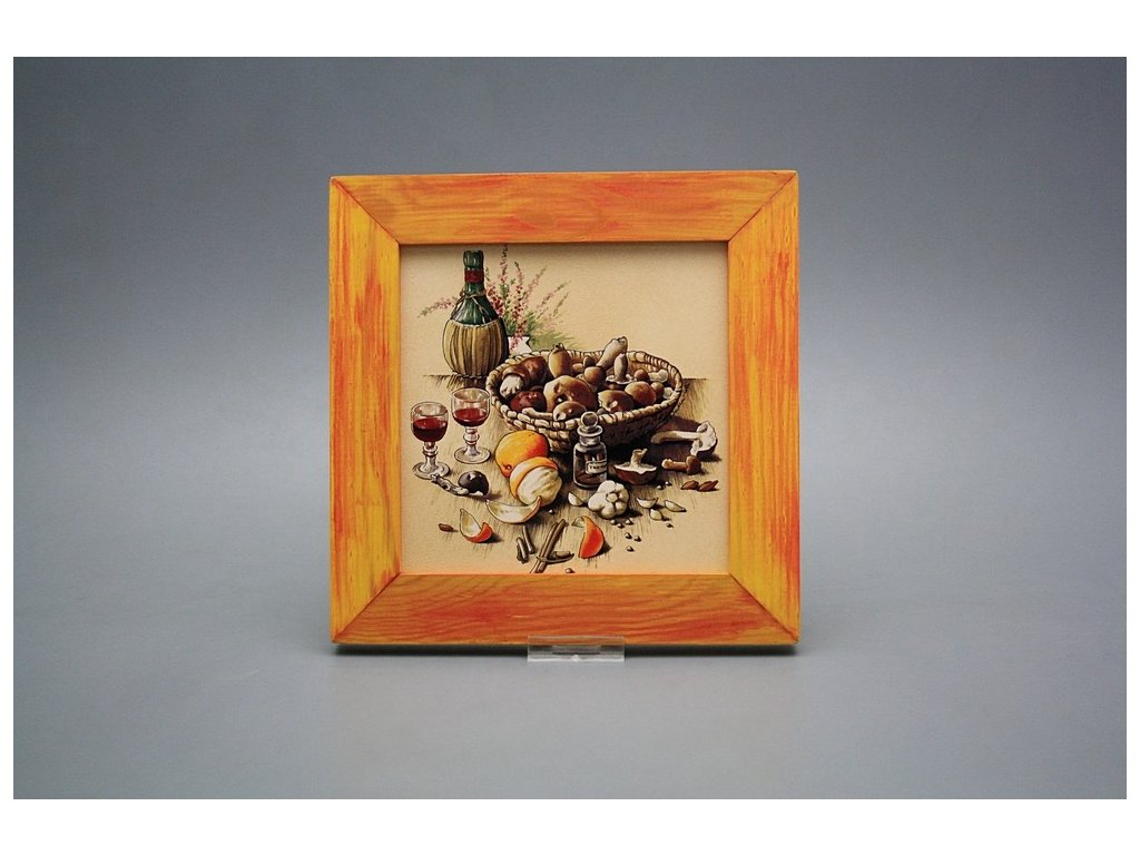 Keramisches Bild zum Aufhängen mit Holzrahmen, Temperatur beim Ausbrennen des Motivs in Höhe von 820°C, abriebfestes, waschbares Dekor.