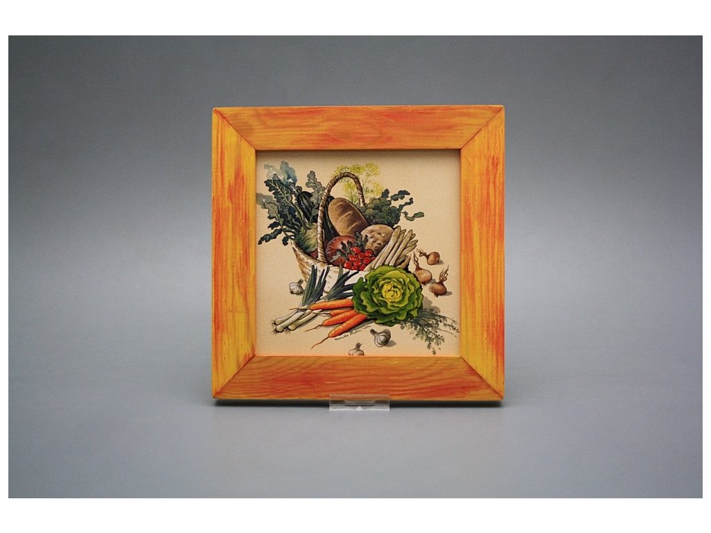 Keramisches Bild zum Aufhängen mit Holzrahmen, Temperatur beim Ausbrennen des Motivs in Höhe von 820°C, abriebfestes, waschbares Dekor.