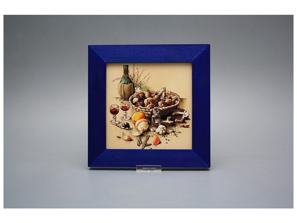 Keramisches Bild zum Aufhängen mit Holzrahmen, Temperatur beim Ausbrennen des Motivs in Höhe von 820°C, abriebfestes, waschbares Dekor.