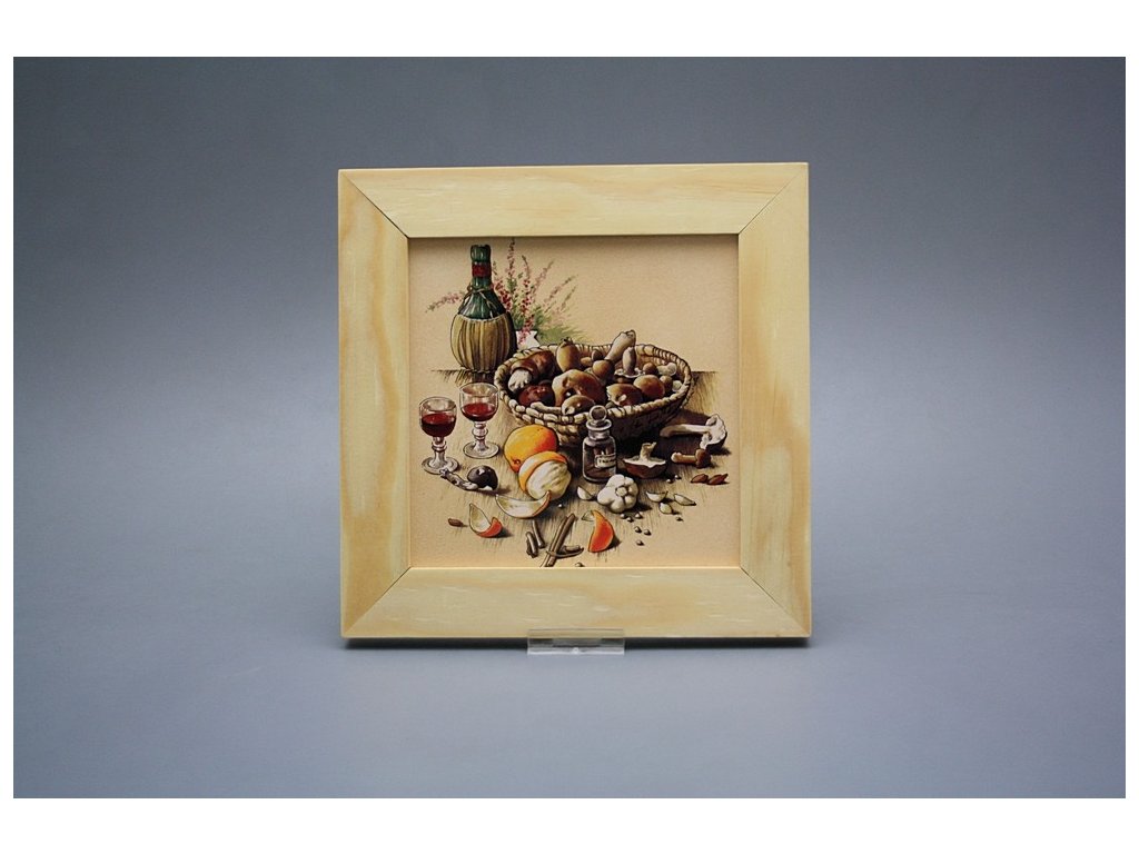 Keramisches Bild zum Aufhängen mit Holzrahmen, Temperatur beim Ausbrennen des Motivs in Höhe von 820°C, abriebfestes, waschbares Dekor.