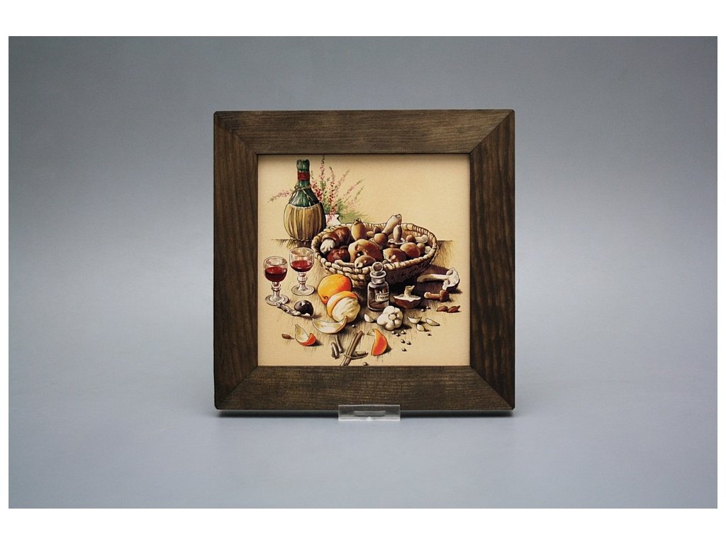 Keramisches Bild zum Aufhängen mit Holzrahmen, Temperatur beim Ausbrennen des Motivs in Höhe von 820°C, abriebfestes, waschbares Dekor.