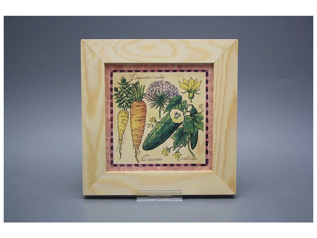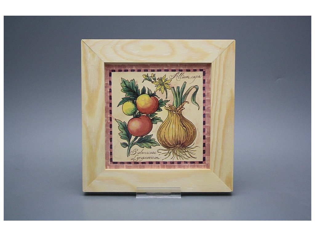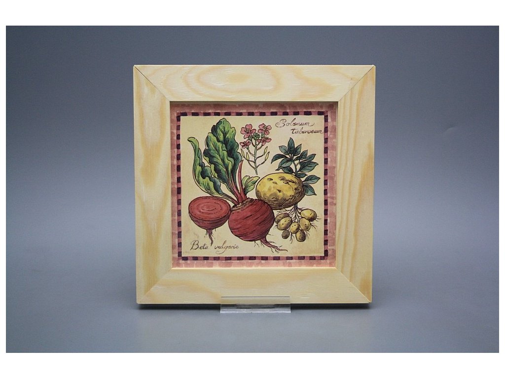 Keramisches Bild zum Aufhängen mit Holzrahmen, Temperatur beim Ausbrennen des Motivs in Höhe von 820°C, abriebfestes, waschbares Dekor.