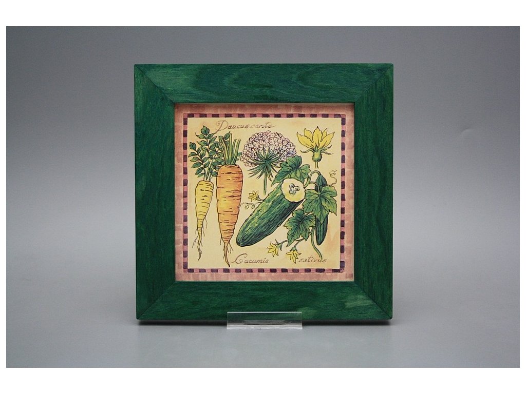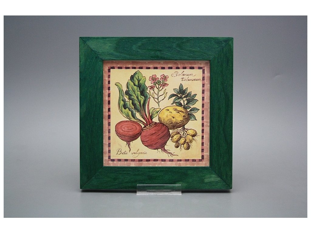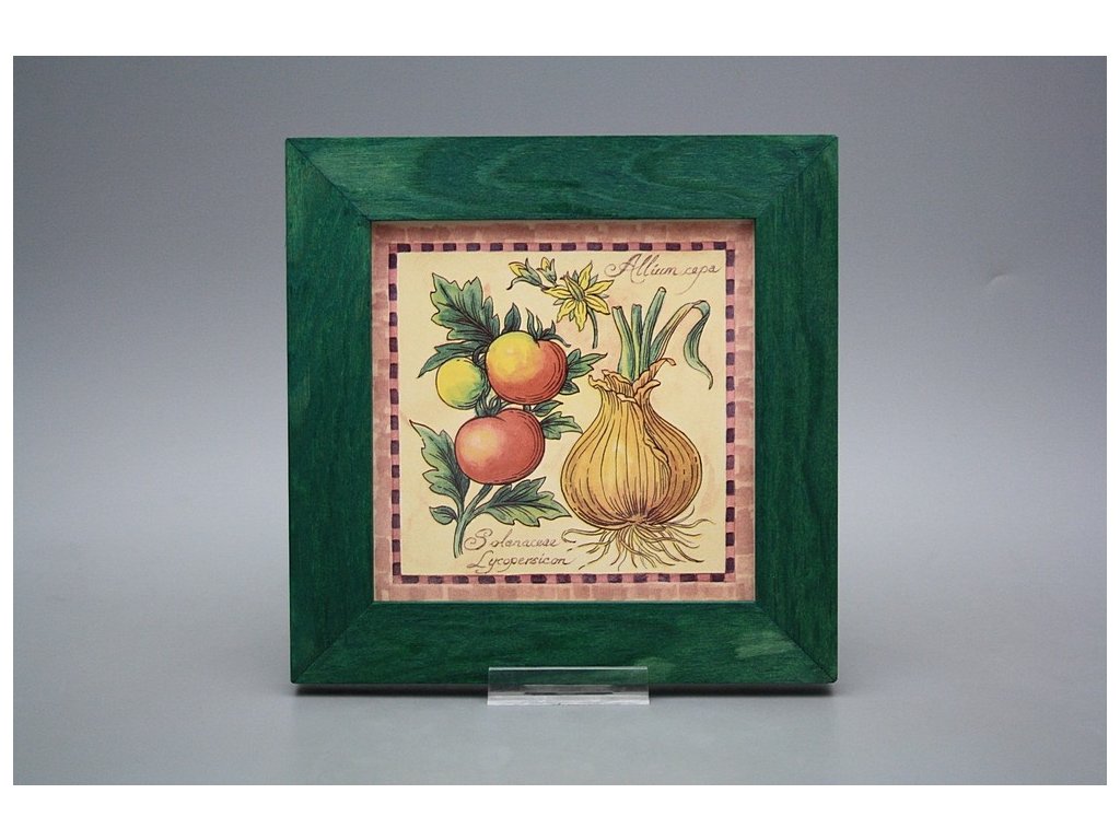 Keramisches Bild zum Aufhängen mit Holzrahmen, Temperatur beim Ausbrennen des Motivs in Höhe von 820°C, abriebfestes, waschbares Dekor.