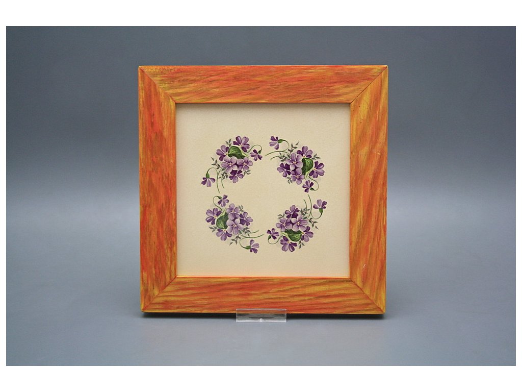 Keramisches Bild zum Aufhängen mit Holzrahmen, Temperatur beim Ausbrennen des Motivs in Höhe von 820°C, abriebfestes, waschbares Dekor.
