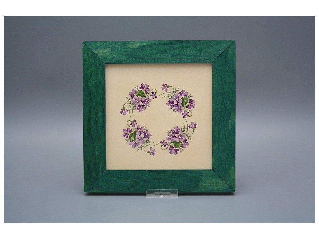 Keramisches Bild zum Aufhängen mit Holzrahmen, Temperatur beim Ausbrennen des Motivs in Höhe von 820°C, abriebfestes, waschbares Dekor.