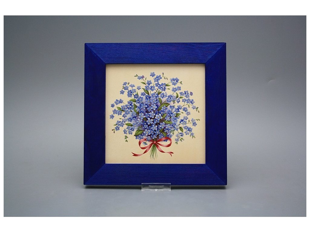 Keramisches Bild zum Aufhängen mit Holzrahmen, Temperatur beim Ausbrennen des Motivs in Höhe von 820°C, abriebfestes, waschbares Dekor.