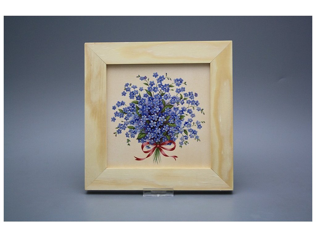 Keramisches Bild zum Aufhängen mit Holzrahmen, Temperatur beim Ausbrennen des Motivs in Höhe von 820°C, abriebfestes, waschbares Dekor.