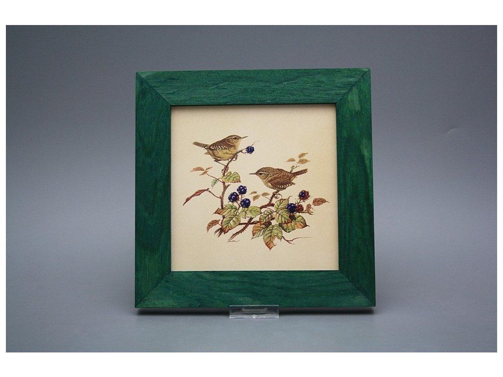 Keramisches Bild zum Aufhängen mit Holzrahmen, Temperatur beim Ausbrennen des Motivs in Höhe von 820°C, abriebfestes, waschbares Dekor.