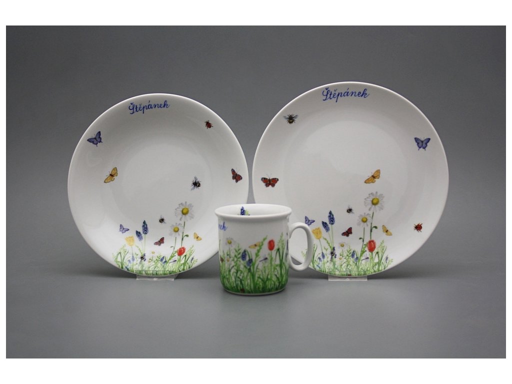 Praktická dětská jídelní souprava z kvalitního českého porcelánu. Vhodná do myčky i mikrovlnné trouby.