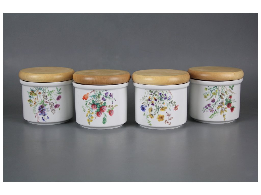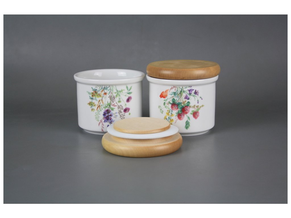 Praktische kleine Dose mit Holzdeckel, gefertigt aus böhmischem Markenporzellan von höchster Qualität.