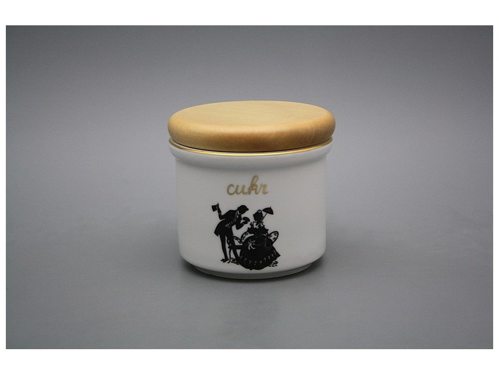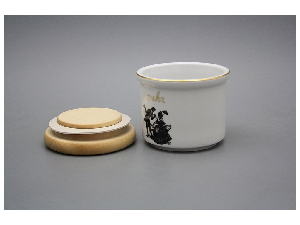 Praktische kleine Dose mit Holzdeckel, gefertigt aus böhmischem Markenporzellan von höchster Qualität. NICHT Spülmaschinenfest!!!