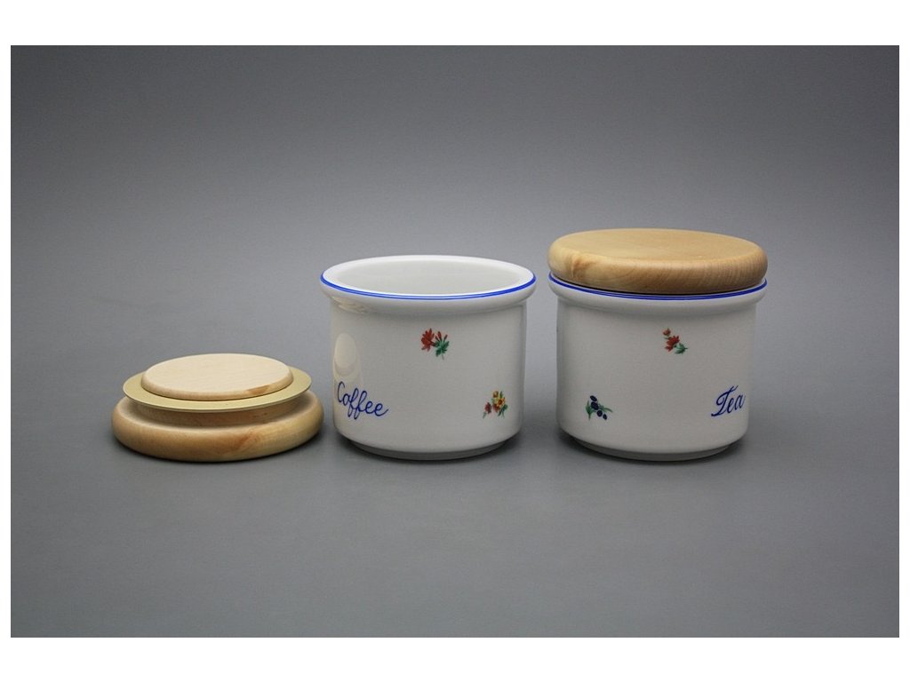 Praktische kleine Dose mit Holzdeckel, gefertigt aus böhmischem Markenporzellan von höchster Qualität. Spülmaschinenfest!!!