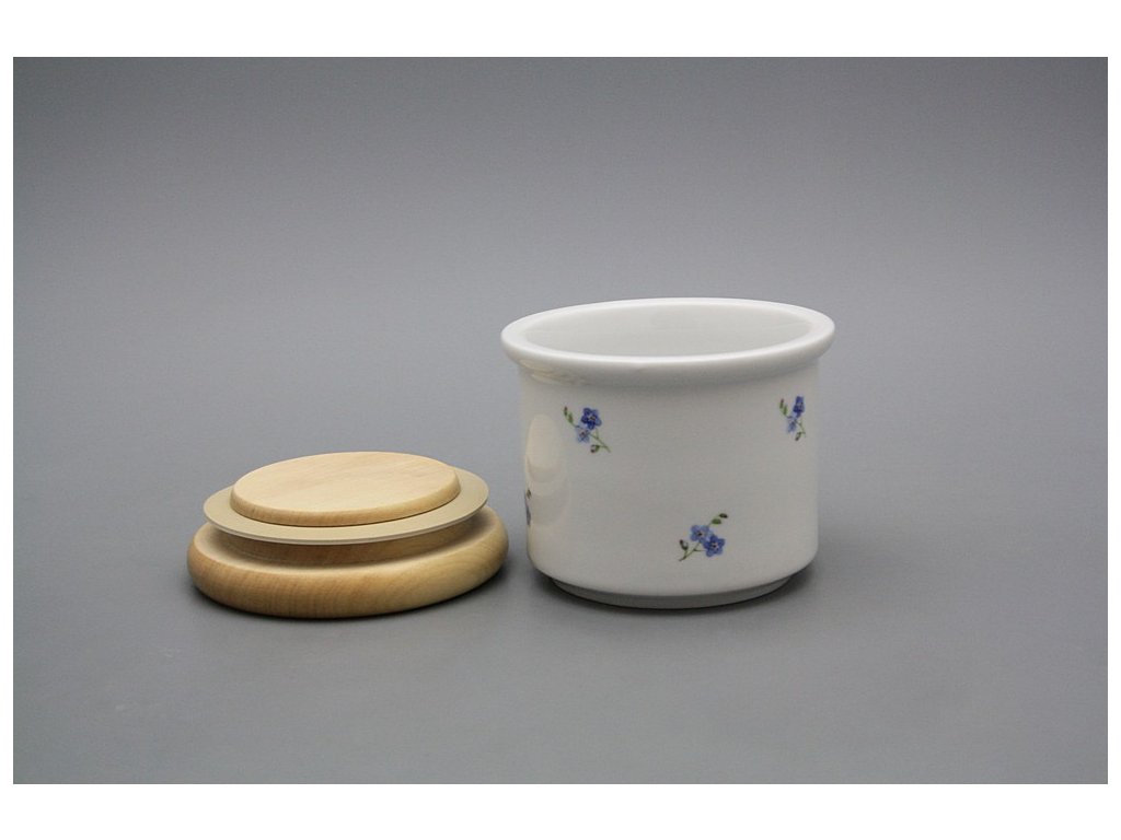 Praktische kleine Dose mit Holzdeckel, gefertigt aus böhmischem Markenporzellan von höchster Qualität. Spülmaschinenfest!!!