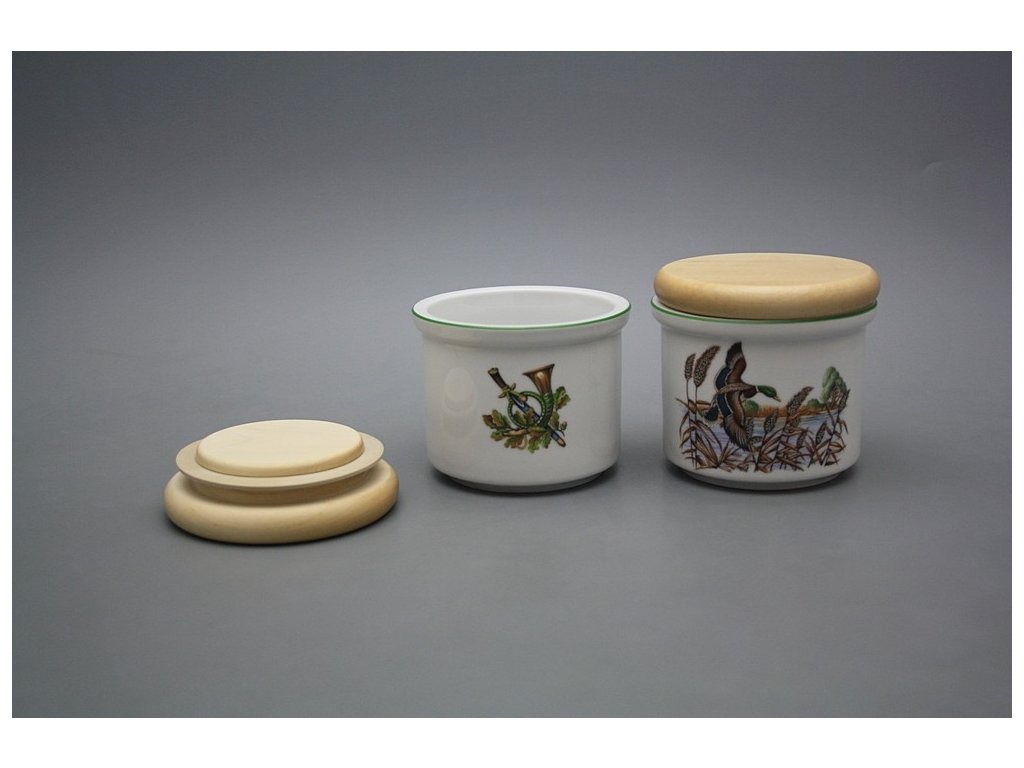 Praktische kleine Dose mit Holzdeckel, gefertigt aus böhmischem Markenporzellan von höchster Qualität. Spülmaschinenfest!!!