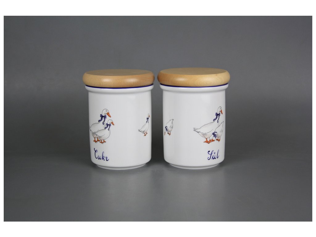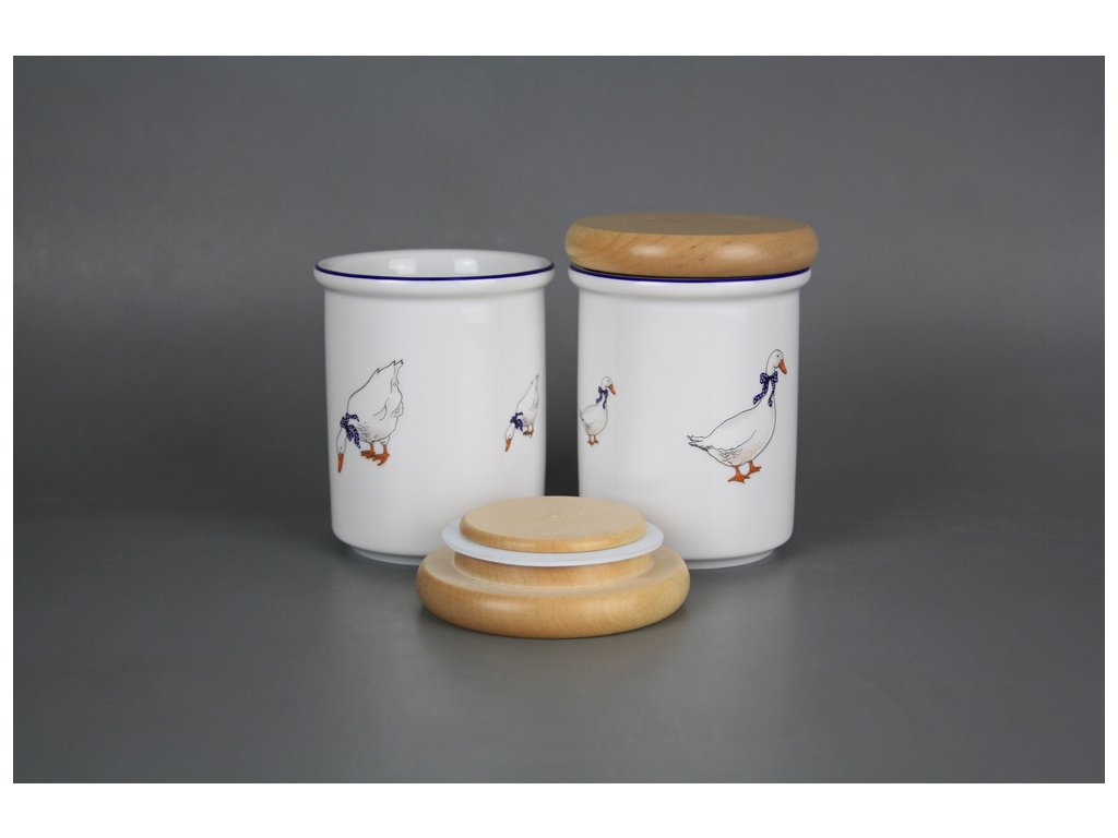 Praktische mittlere Dose mit Holzdeckel, gefertigt aus böhmischem Markenporzellan von höchster Qualität. Spülmaschinenfest!!!