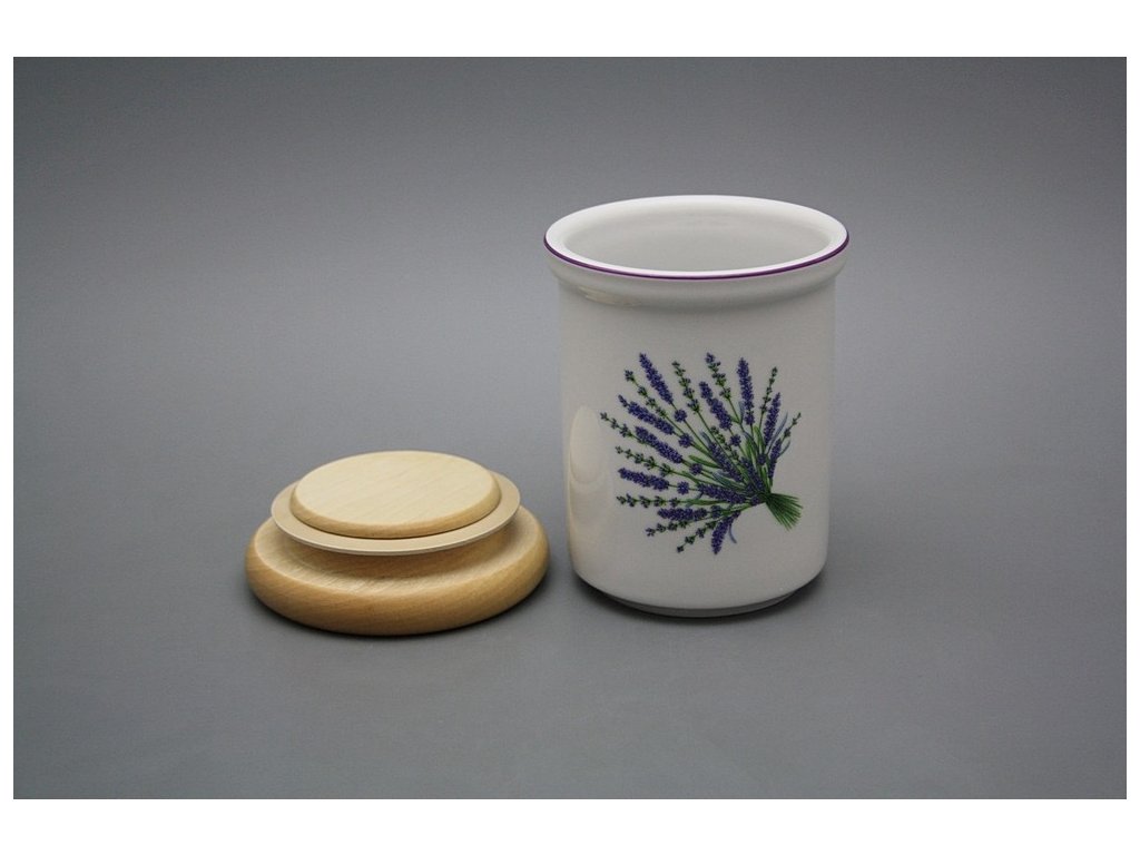 Praktische mittlere Dose mit Holzdeckel, gefertigt aus böhmischem Markenporzellan von höchster Qualität. Spülmaschinenfest!!!