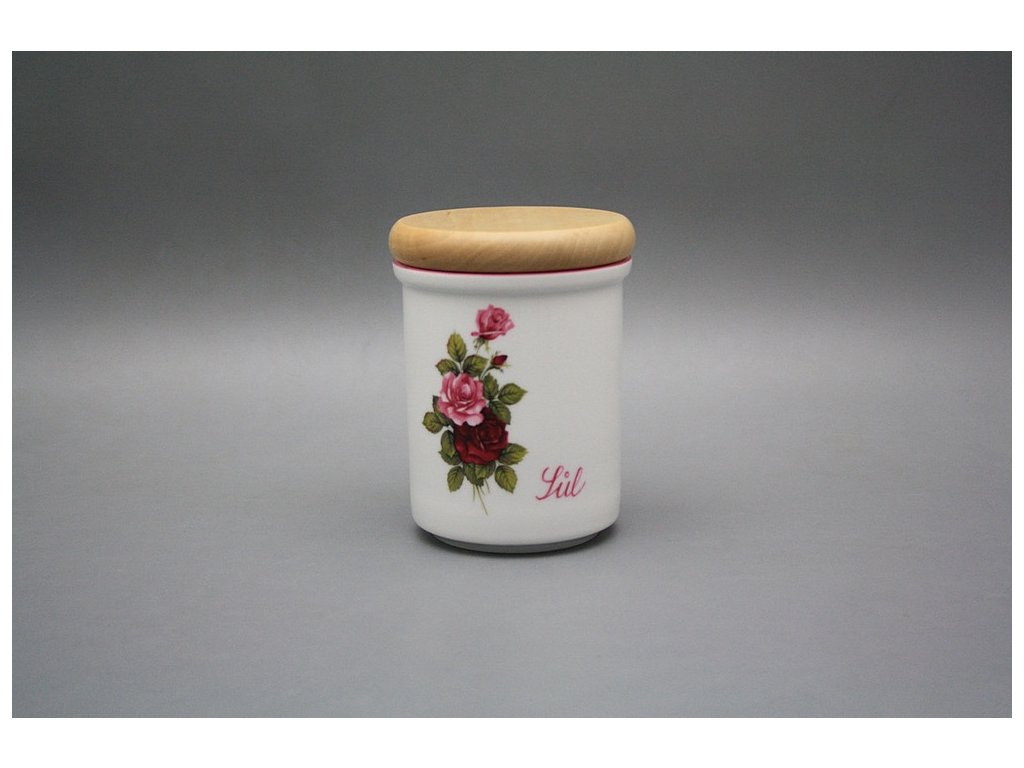 Praktische mittlere Dose mit Holzdeckel, gefertigt aus böhmischem Markenporzellan von höchster Qualität.
