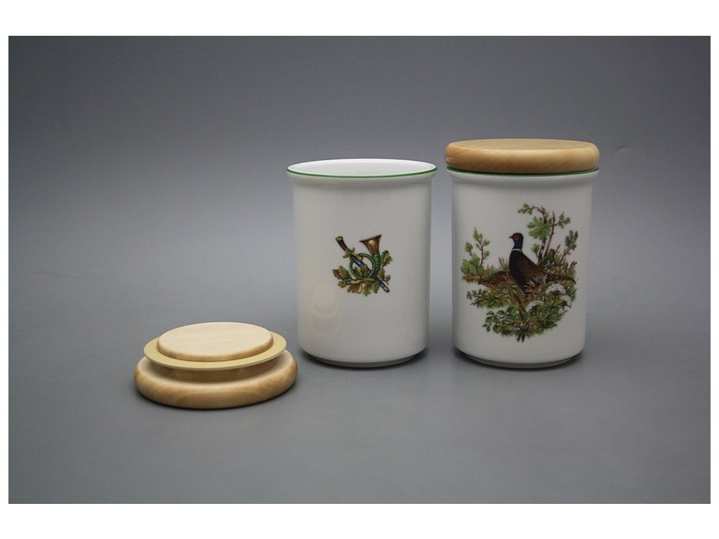 Praktische große Dose mit Holzdeckel, gefertigt aus böhmischem Markenporzellan von höchster Qualität. Spülmaschinenfest!!!