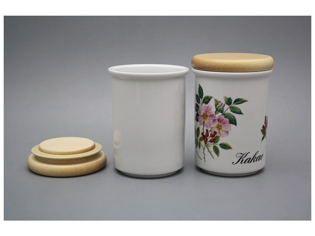 Praktische große Dose mit Holzdeckel, gefertigt aus böhmischem Markenporzellan von höchster Qualität. Spülmaschinenfest!!!