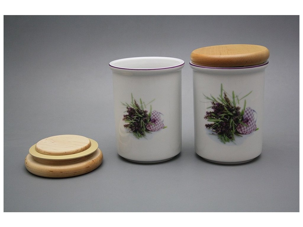 Praktische große Dose mit Holzdeckel, gefertigt aus böhmischem Markenporzellan von höchster Qualität. Spülmaschinenfest!!!