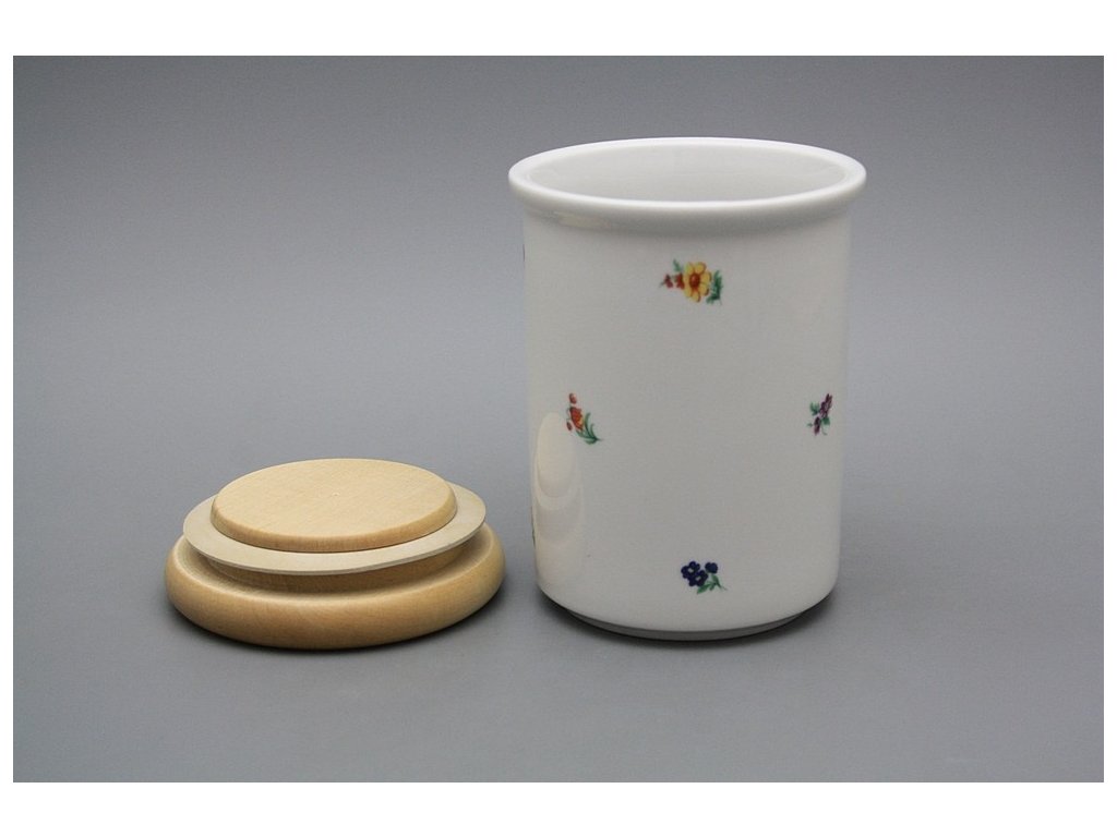 Praktische große Dose mit Holzdeckel, gefertigt aus böhmischem Markenporzellan von höchster Qualität. Spülmaschinenfest!!!