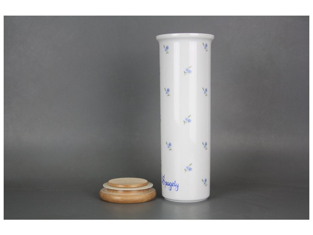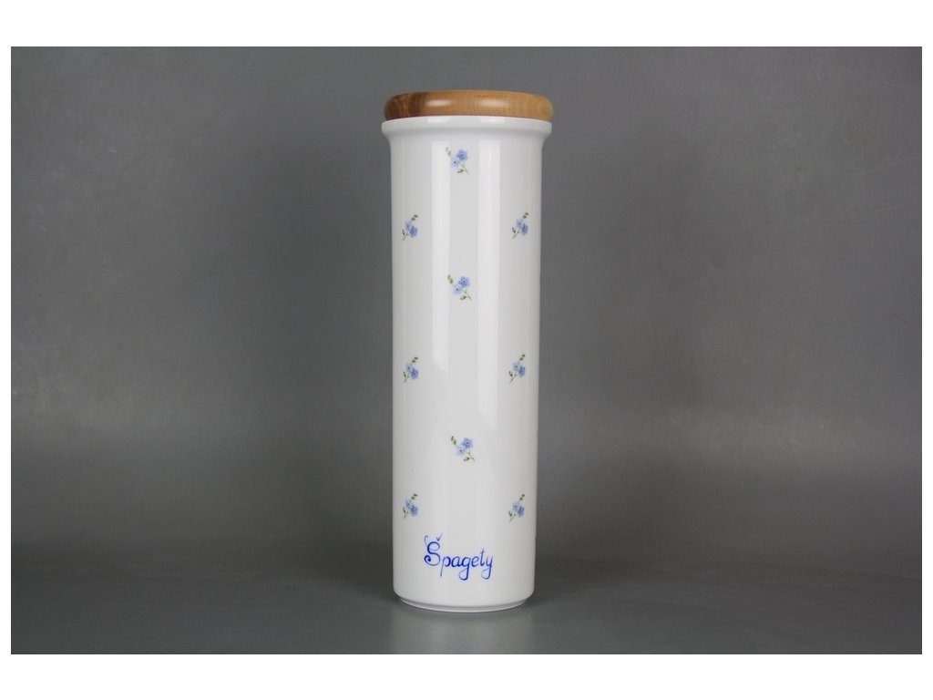 Praktická vysoká dóza na špagety s dřevěným víčkem z kvalitního českého porcelánu. Vhodná do myčky.