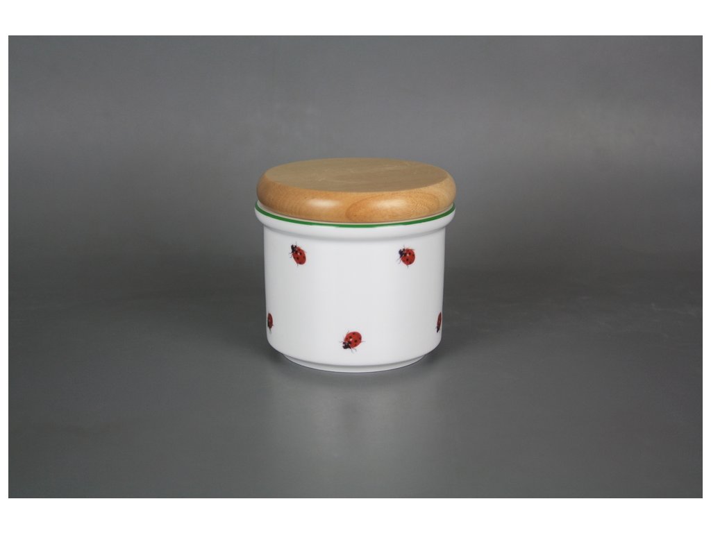 Praktická malá dóza s dřevěným uzávěrem z kvalitního českého porcelánu. Vhodná do myčky.
