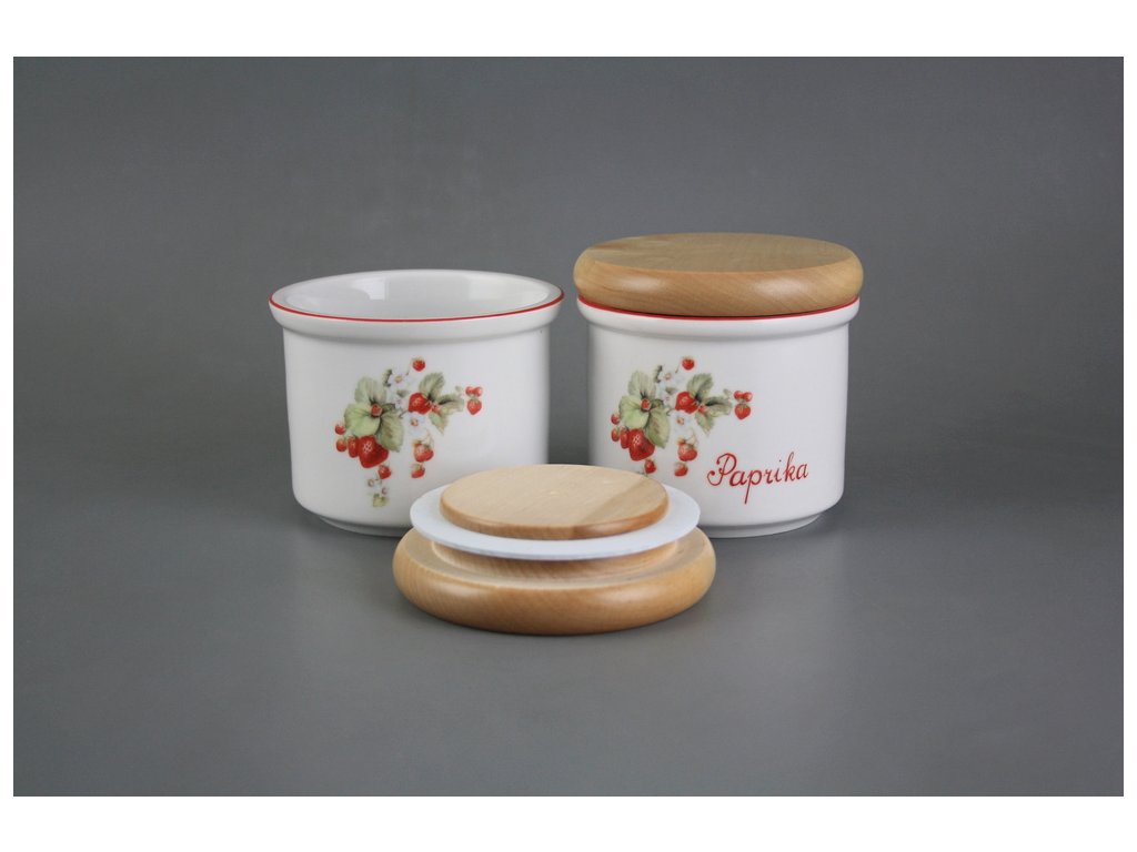 Praktická malá dóza s dřevěným uzávěrem z kvalitního českého porcelánu. Vhodná do myčky.