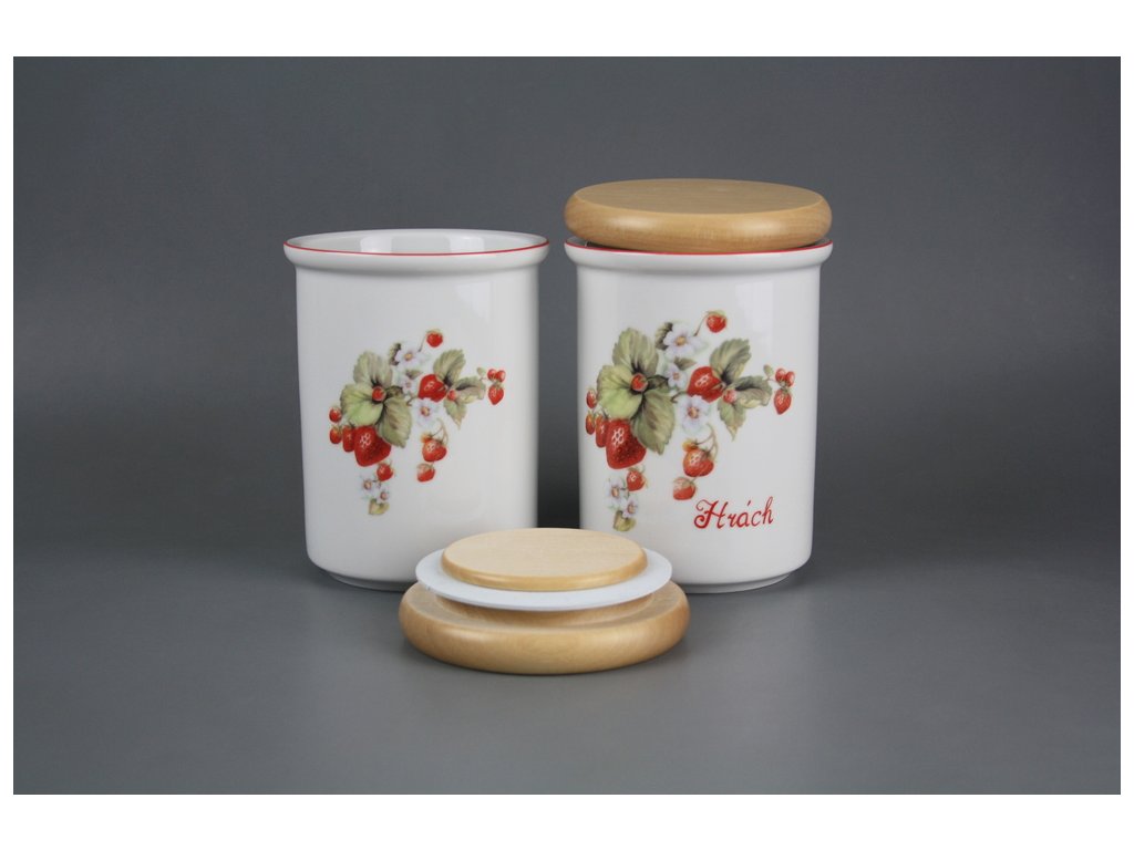 Praktická velká dóza s dřevěným uzávěrem z kvalitního českého porcelánu. Vhodná do myčky.