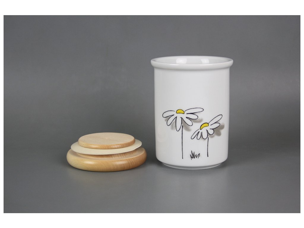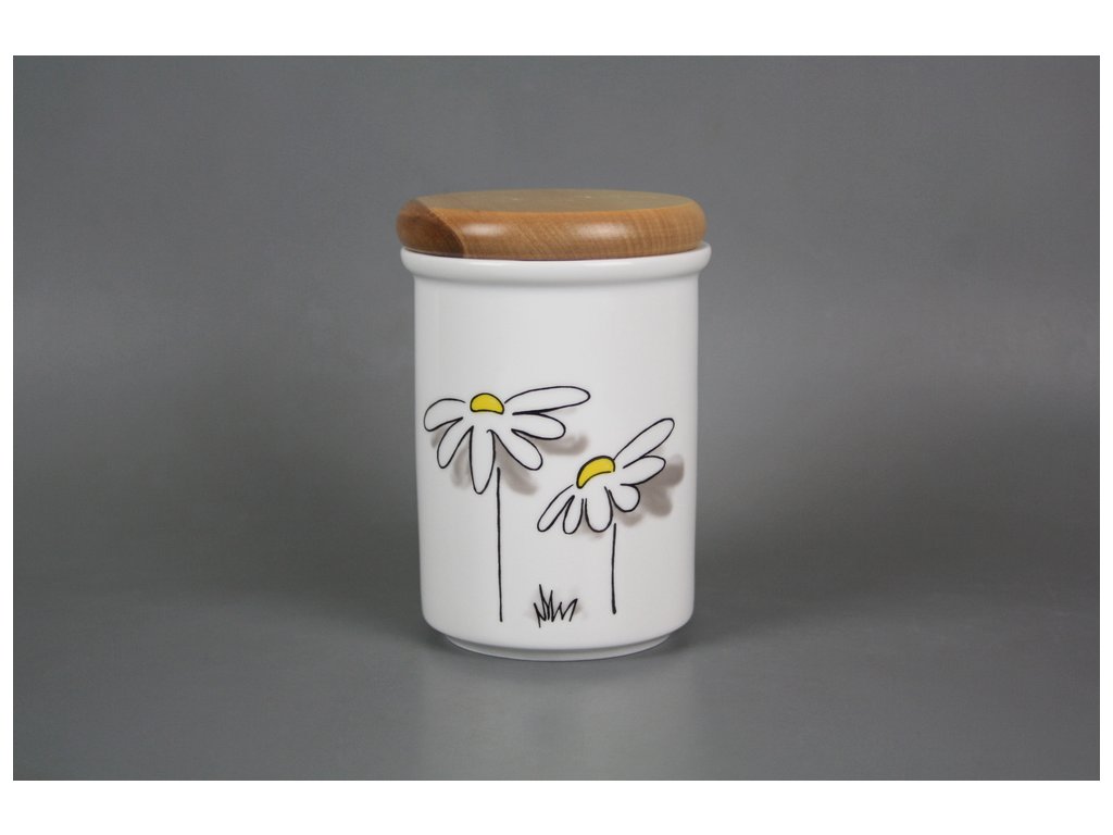Praktická velká dóza s dřevěným uzávěrem z kvalitního českého porcelánu. Vhodná do myčky.