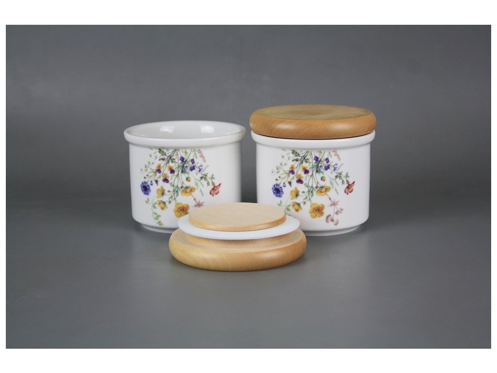 Dóza s dřevěným uzávěrem A - malá Kvetoucí louka motiv B BB