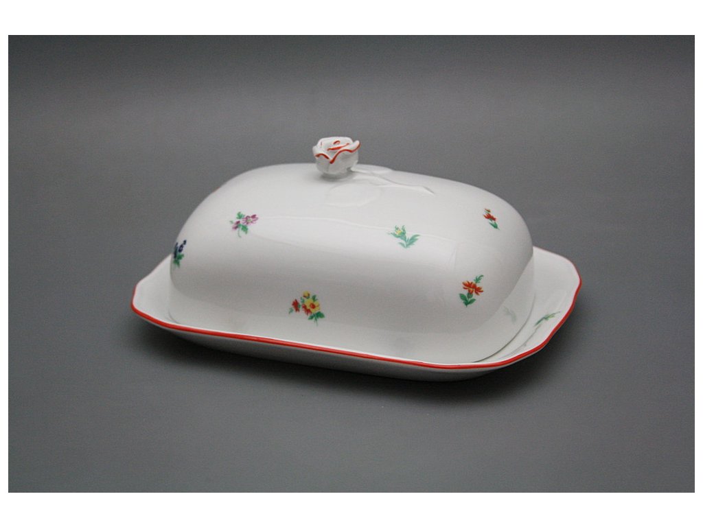 Praktische eckige Butterdose, gefertigt aus böhmischem Markenporzellan von höchster Qualität. Spülmaschinenfest und mikrowellentauglich, JA!!!