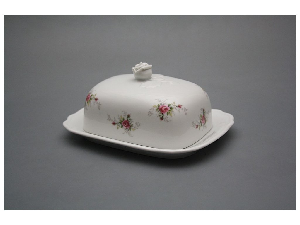 Eckige Butterdose kleine Rokoko Rosarote Rosen BB