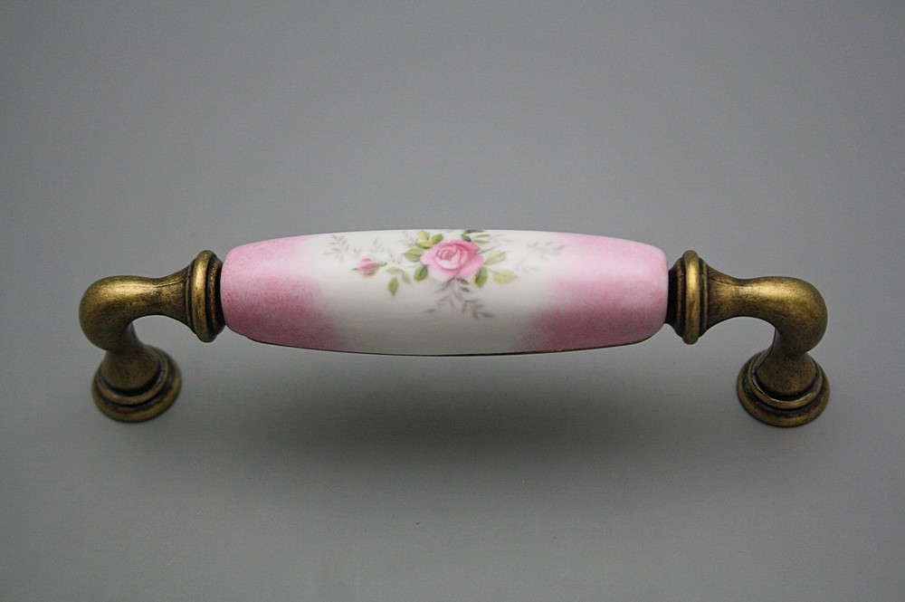home » Eshop » Porzellan Griffe, Knöpfe und Schilder » Rustikale Möbelgriffe 128mm » Rustikaler Griff 128mm Rosarote Rosen