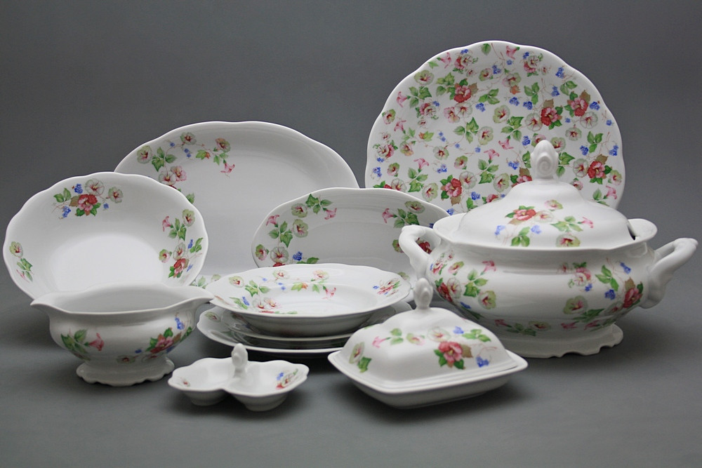 Praktisches 27teiliges Tafelservice, gefertigt aus böhmischem Markenporzellan von höchster Qualität. Spülmaschinenfest und mikrowellentauglich, JA!!!