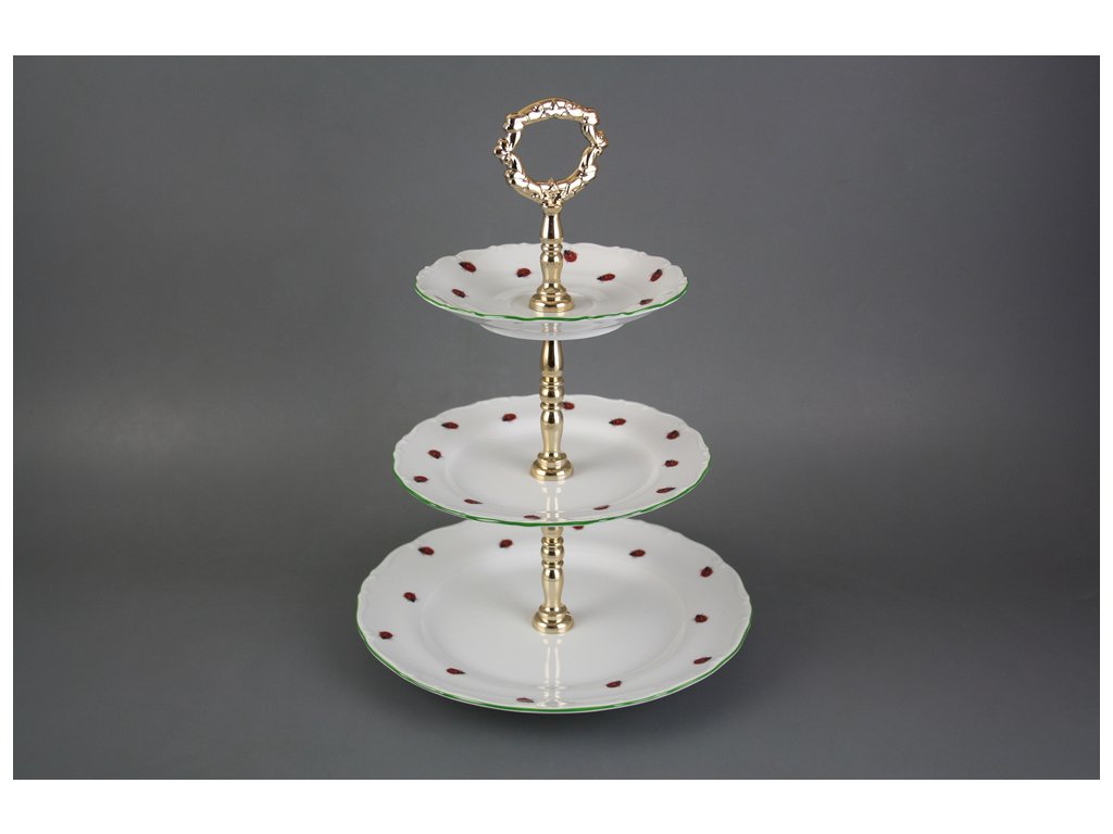 Praktický třípatrový etažer z kvalitního českého porcelánu. Vhodný do myčky. DO POZNÁMKY UVEĎTE KTEROU VARIANTU ZÁMKU POŽADUJETE (zlatý nebo stříbrný)!!!