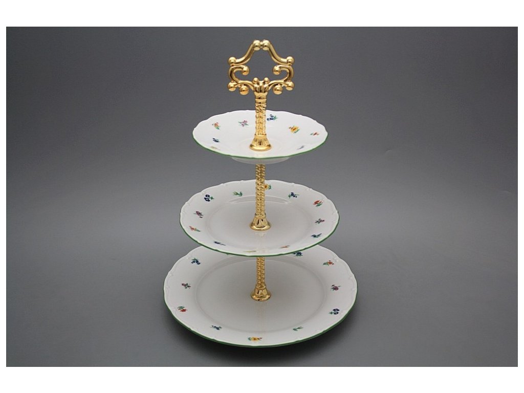 Praktický třípatrový etažer z kvalitního českého porcelánu. Vhodný do myčky. DO POZNÁMKY UVEĎTE KTEROU VARIANTU ZÁMKU POŽADUJETE (zlatý nebo stříbrný)!!!