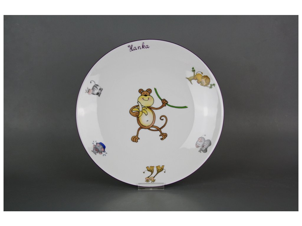 Ein origineller Kinderteller (24cm) aus hochwertigem tschechischem Porzellan mit dem handgeschriebenen Namen des Kindes. Dieser Teller ist sowohl für die Spülmaschine als auch für die Mikrowelle geeignet.